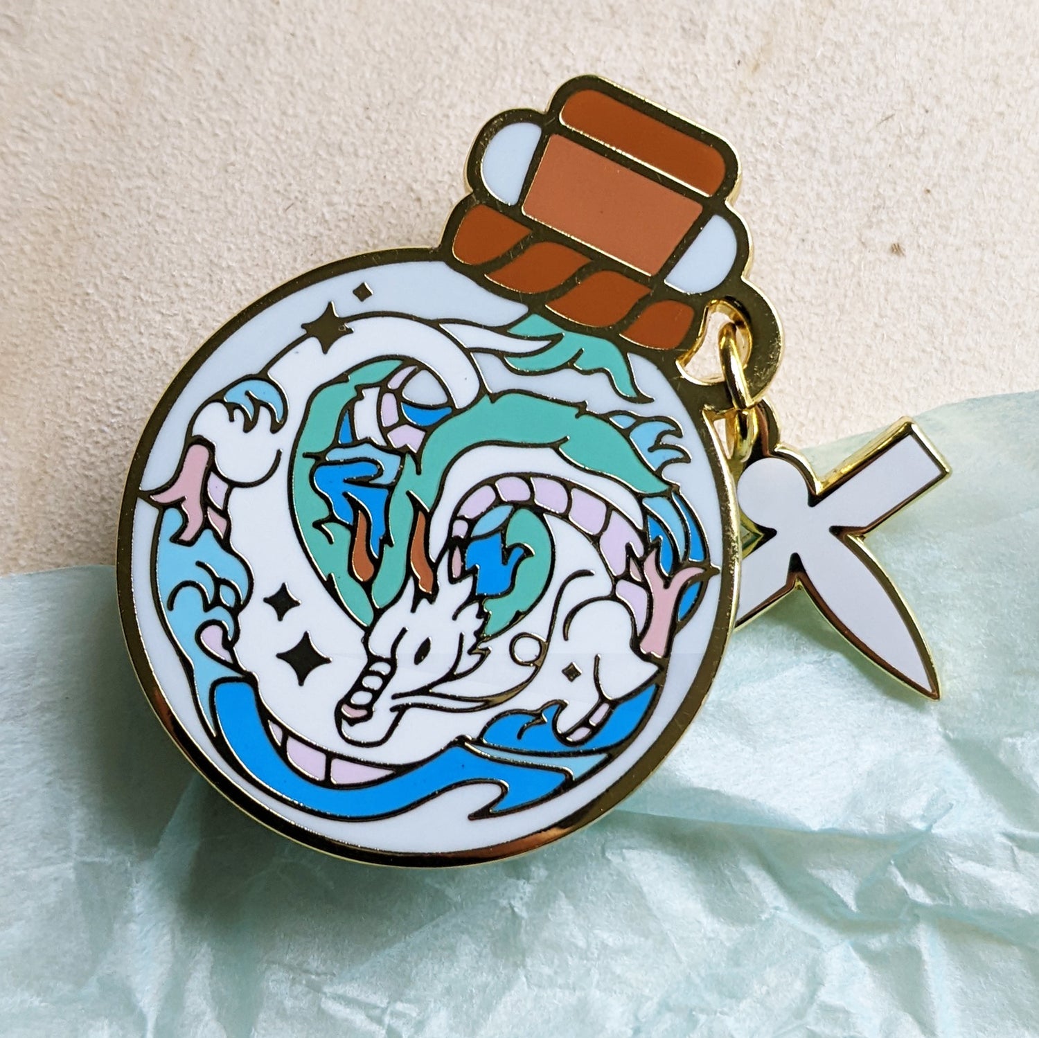 River Dragon Bottled Guardian Enamel Pin