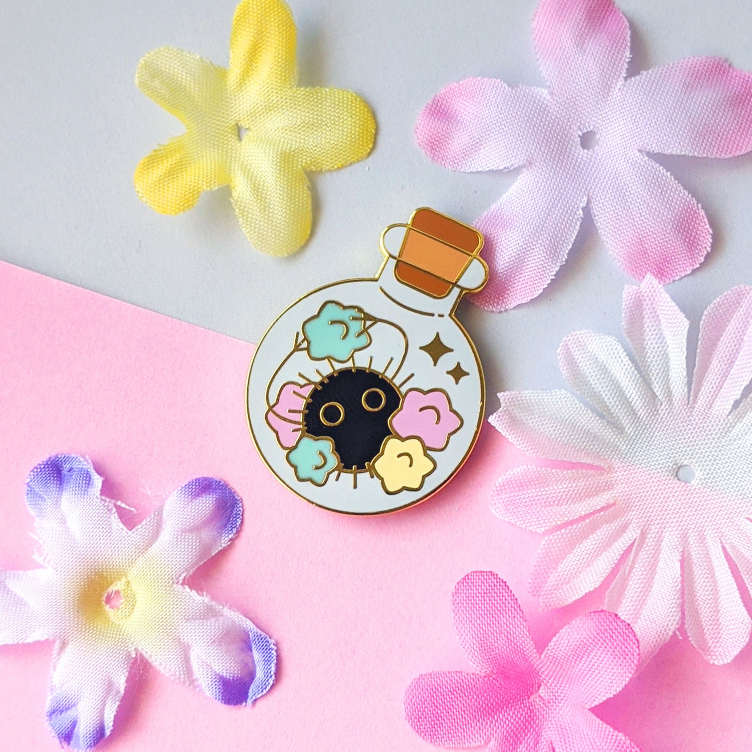 Small spirits with unique powers stored in bottles can be easily pinned onto...
